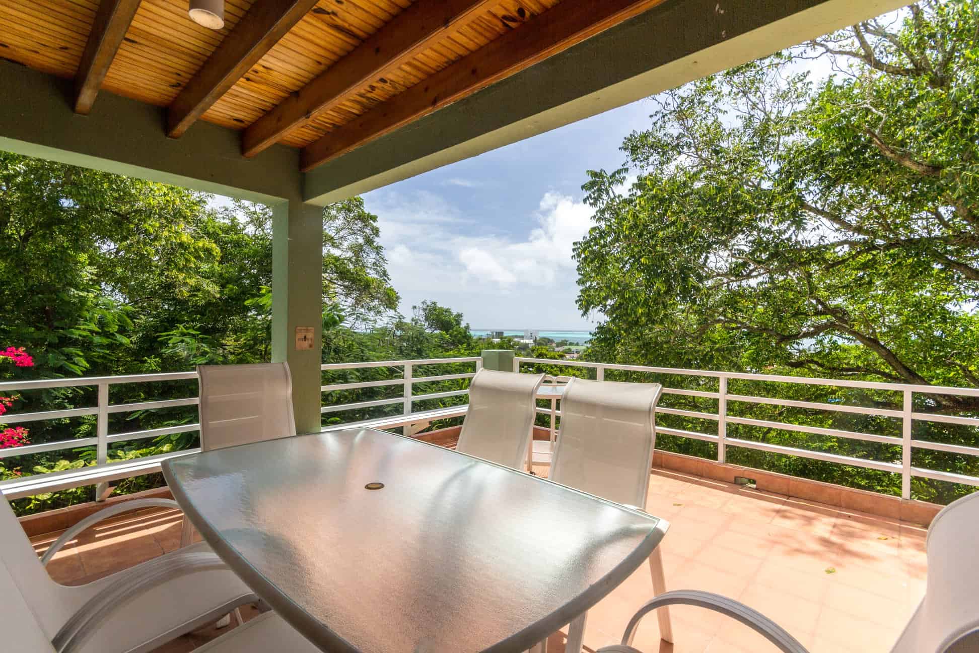 Las áreas de sala y comedor igualmente gozan de la misma panorámica hacia el mar y un segundo comedor localizado en la terraza frente a la cocina disfruta también de las visuales al océano además de la cercanía de la vegetación que rodea la casa.